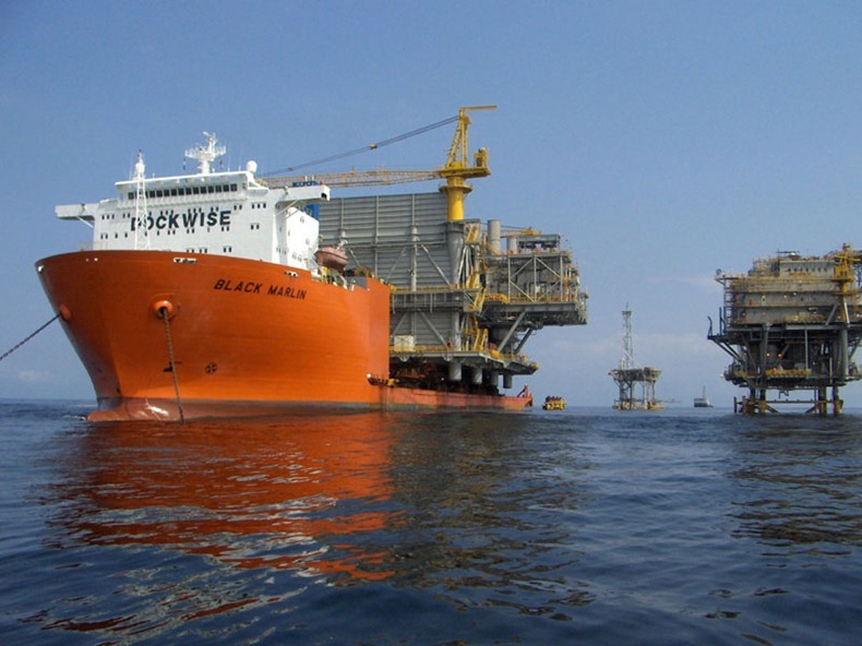 In 2004, Blue Marlin carried the world's largest semi-submersible oil platform, 60,000 tonne semi-submersible production rig, Thunder Horse, over 15,000 nautical miles from Okpo, Korea to Corpus Christi, Texas.